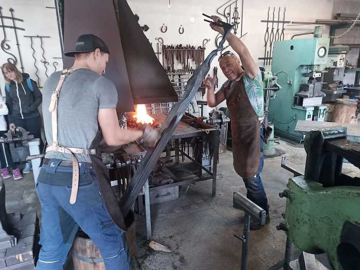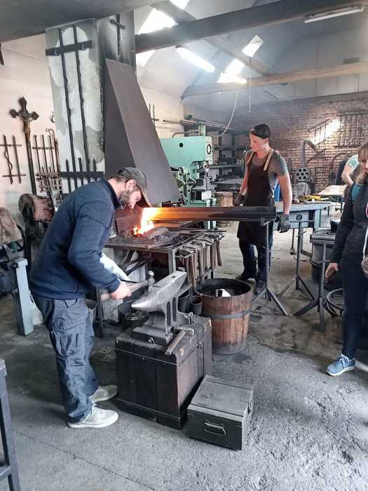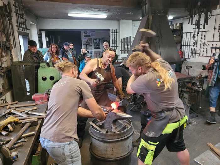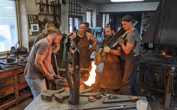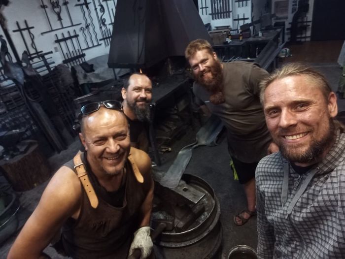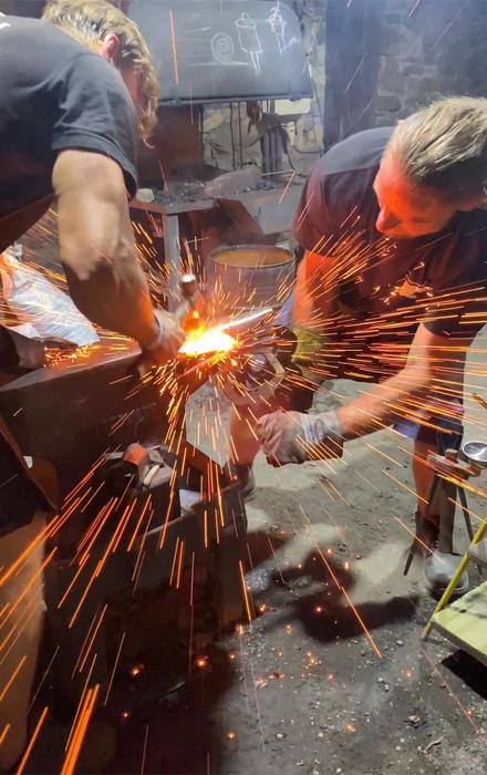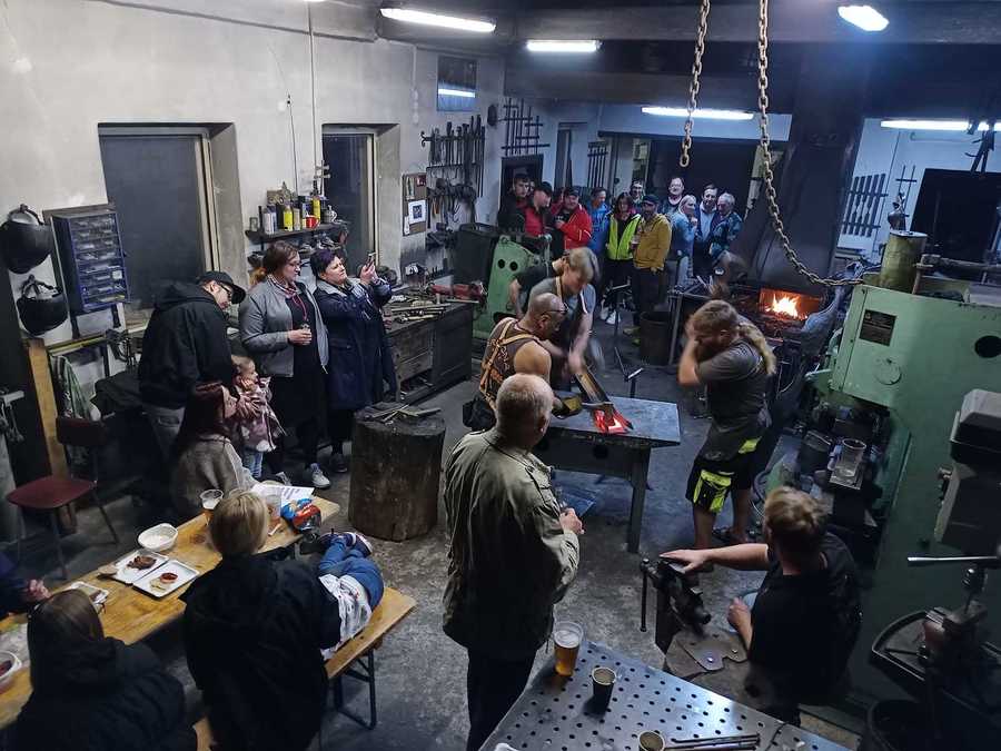 Fotografie z výroby kované plastiky " Setkávání" v našem uměleckém kovářství při Dnech otevřených ateliérů 2023